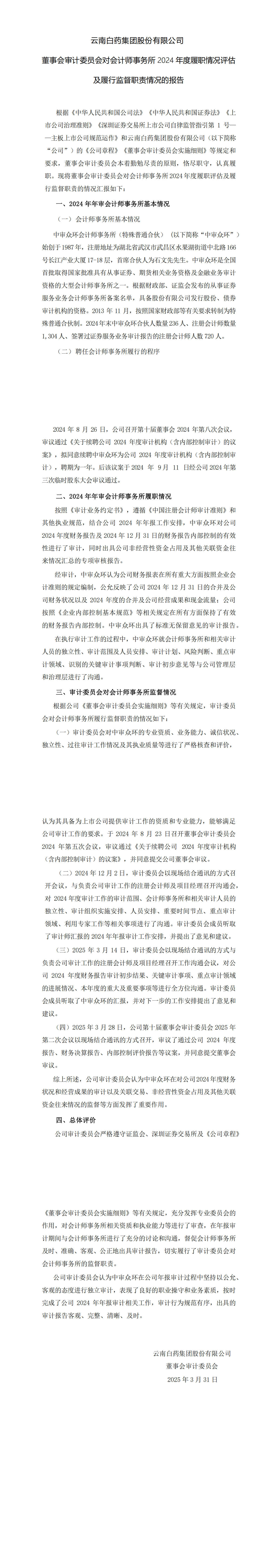 云南k1体育集团股份有限公司 董事会审计委员会对会计师事务所 2024 年度履职情况评估 及履行监督职责情况的报告